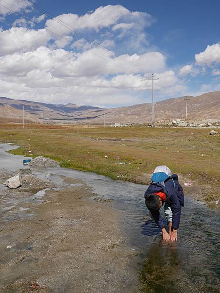 去完珠峰後,我們要前往的是同為西藏三大聖湖的納木措,從日喀則到納木措約要7-8小時,我們中間有經過有名的羊八井溫泉,但我們沒有進去,導遊帶我們到旁邊同樣有地熱旁的河流,讓我們脫掉鞋子泡腳,溫溫的河流很舒服