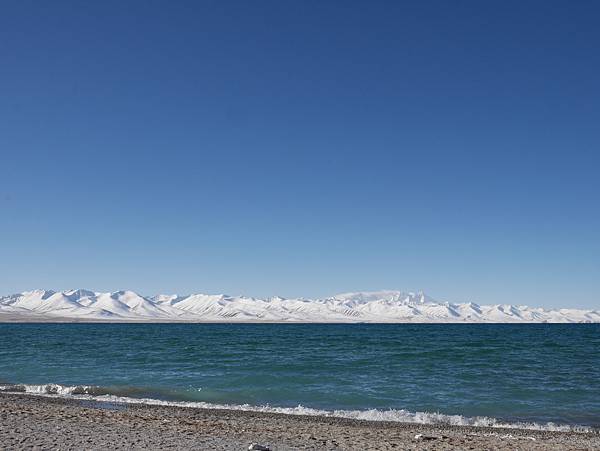 最後我們象徵性的拍了幾張日出照,以代表辛苦爬上山丘的我們,然後我們先回到旅社吃早餐,吃完早餐後,我們就跑到湖邊玩耍,納木措被四周的雪山所環繞,仿佛是被雪山所守護一般,湛藍的湖水和四周的雪山,給人一種神聖平靜的感覺
