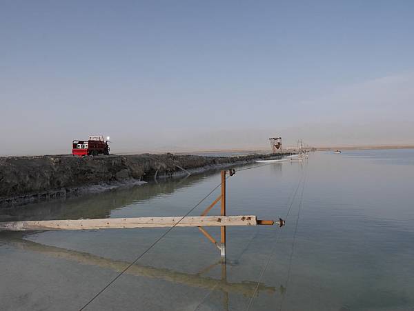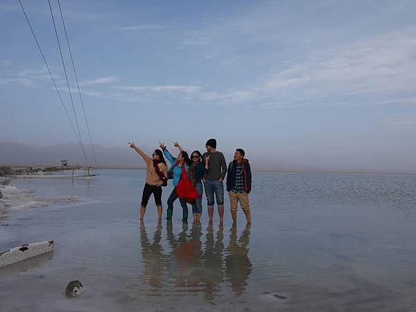 翻過拉脊山後,歷經2個小時左右的車程,我們到達號稱中國天空之鏡的茶卡鹽湖,因為現在茶卡鹽湖現在正在整修,從正門是進不去的,於是師傅帶我們從小路繞進去,果然當地的師傅總是能找出方法,可惜我們到達鹽湖的時候天氣陰陰的,但還是無法阻擋大家興奮的脫鞋,並在鹽湖裡拍各種給掰照的熱情
