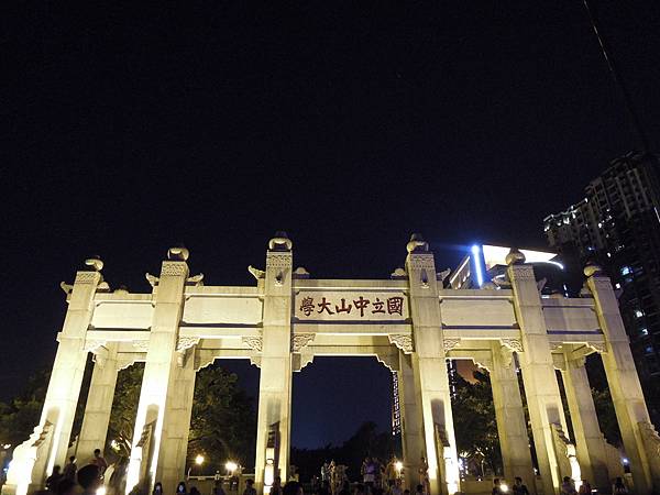 然後晚上去了中山大學的北門看夜景,中山大學的北門就在珠江旁,在這會有許多學生坐在北門的牌坊下,欣賞珠江的夜景,旁邊也會有些小攤販賣些吃的,我想這裏肯定是中山大學情侶的約會熱門景點,一起買點消夜,邊吃邊欣賞珠江的夜景,多麼溫馨。