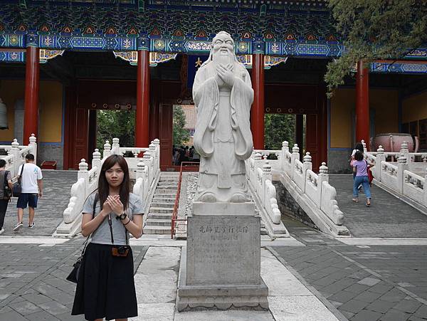 相比於頤和園,國子監和孔廟人潮少了許多,而且大多是整團學生的旅行團,我們簡單的聽解員解釋孔廟的歷史,並和仲尼拍了張合照以表示我們的敬意後