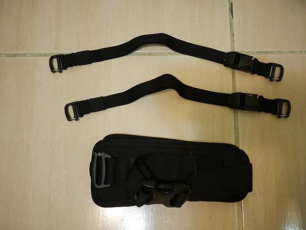額外加購的背袋,最下方的背包腰帶,在東西偏多時可以加裝來減輕背負