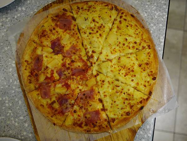 榴槤pizza在廣州算是很常見的pizza,之前因為不是很喜歡榴槤的關係,所以一直沒敢嘗試,結果這次吃了後,發現實際上還不錯,不知道是不是因為烤過的關係,榴槤的臭味都不見了,只有淡淡的香味,還QQ軟軟甜甜,還挺好吃的